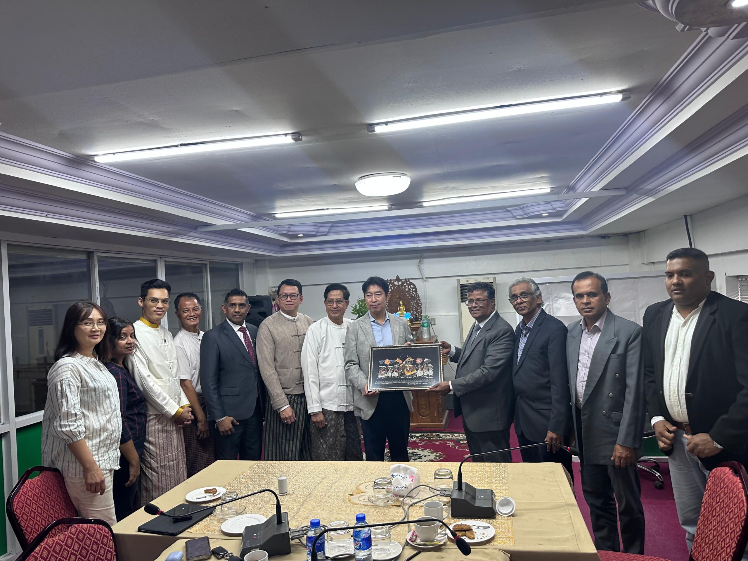 A delegation of private-sector entrepreneurs from Sri Lanka, representing the tourism and travel industries, visited Myanmar at the invitation of the Embassy, together with the members of the Sri Lankan community in Myanmar, who are already involved in successful business ventures, participated to explore opportunities for enhancing bilateral cooperation in the tourism sector. The Sri Lanka delegation, headed by the Embassy of Sri Lanka in Yangon, included Mr. Parinda Dissanayake, CEO, Travel Vibes PLC; Mr. Saliya Dharmawardane, Travel Vibes PLC, Finance Consultant/Certified Public Accountant; Mr. Gayan Jayawickrama, Director (Finance & Operations) Travel Vibes PLC, Mr. Dhammika Nishantha Karangoda, IT Consultant; Mr. Paul Jeganathan, Heyleys Advantis Kusuhara Sedate Myanmar (Pvt) Ltd; Mr. Rasika Batagoda, LOLC Myanmar Microfinance Company; Mr. Shalinda Rathnayake, Shanthi Travels Sri Lanka; and Mr. Prabhath Wickramasinghe, Managing Director (Colombo–Burma), Happy Hour Travels and Tours.