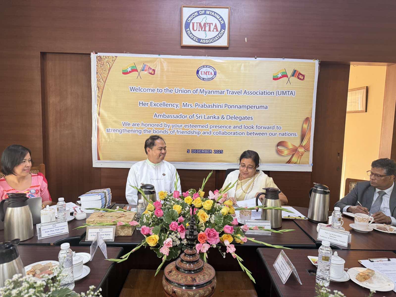 As a part of the two day Sri Lanka Tourism Promotion Programme, held in Yangon, Myanmar, on 5 and 6 December 2025, the Embassy of Sri Lanka in Yangon successfully concluded two Business-to-Business (B2B) meetings with leading tourism organizations in Myanmar, including the Union of Myanmar Travel Association (UMTA) and Myanmar Travel Marketing (MTM).
