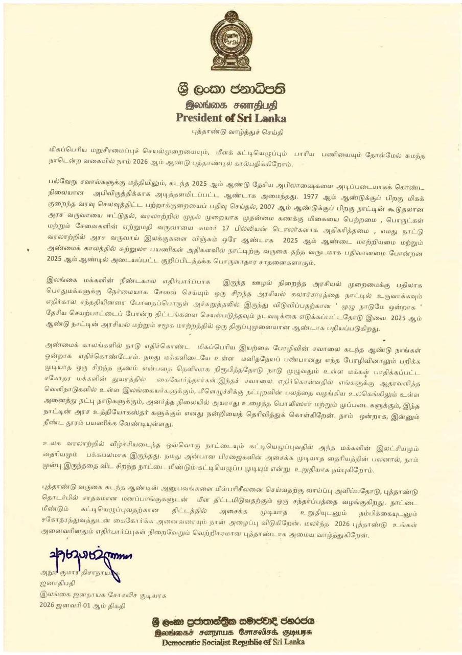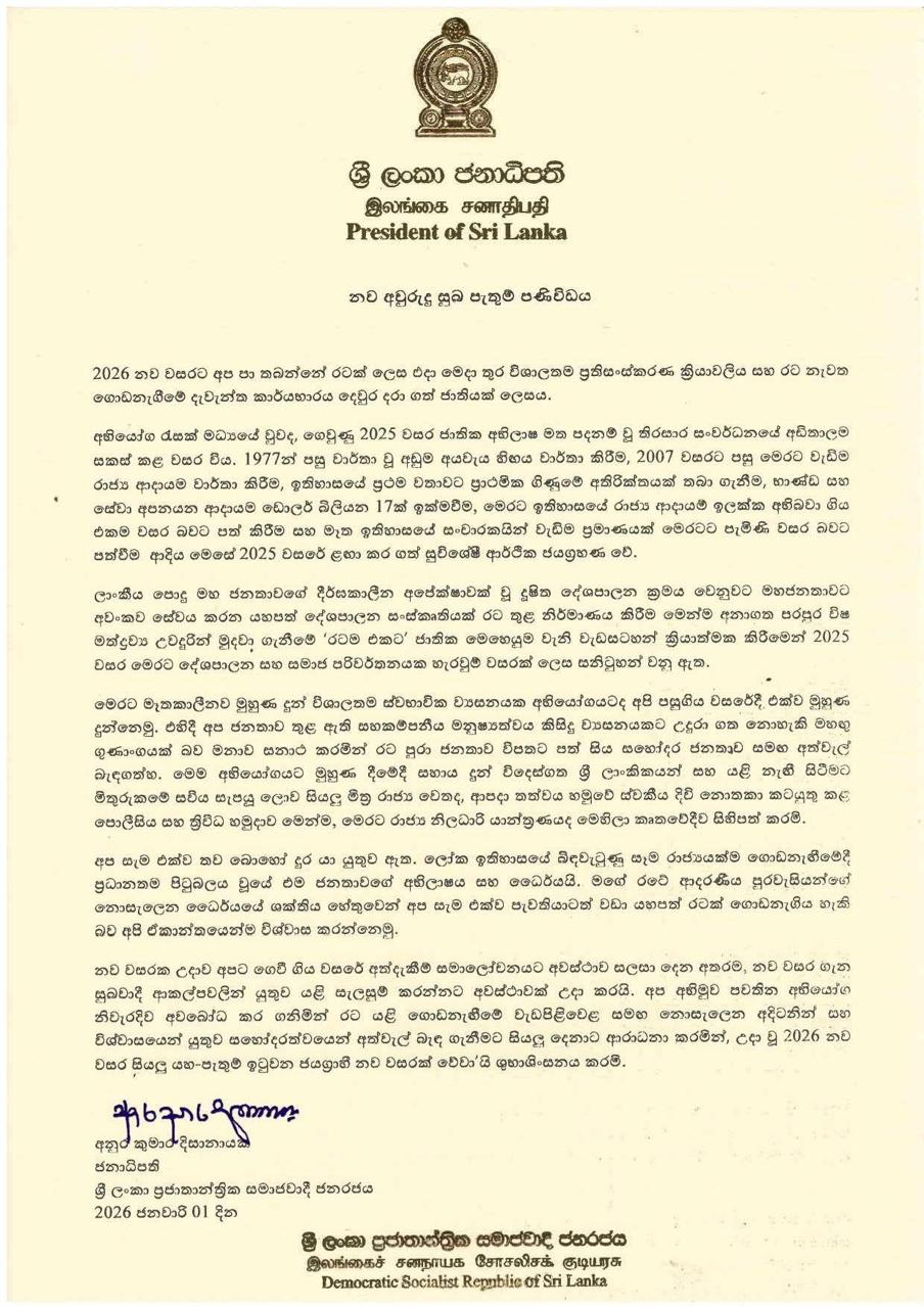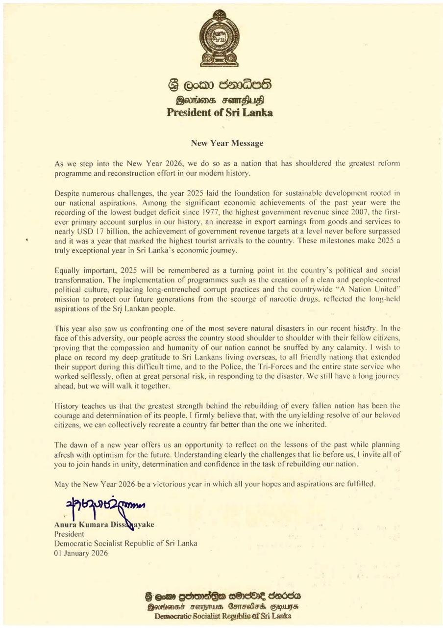 As we step into the New Year 2026, we do so as a nation that has shouldered the greatest reform programme and reconstruction effort in our modern history.